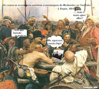 O actual presidente russo, além de ser um sujeitinho bastante complexadinho por causa da sua estatura baixinha, não consegue acertar no papel, que lhe calhou pela decisão do Kremlin. Escolhido a dedo para representar a peça chamada “a primavera kremlinista”, presidente Ursinho, digo Medvedev, no fundo da sua alminha adoraria de ser um “polícia mauzinho”, do tipo xerife do faroeste, que ora “guerreia” a Geórgia, ora dirige o sermão “imperial” a Ucrânia.