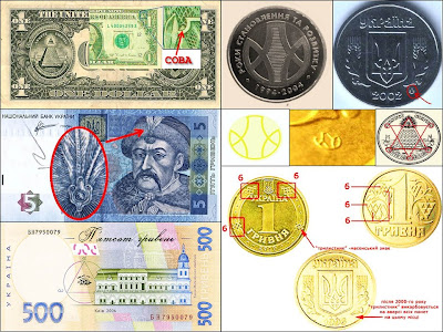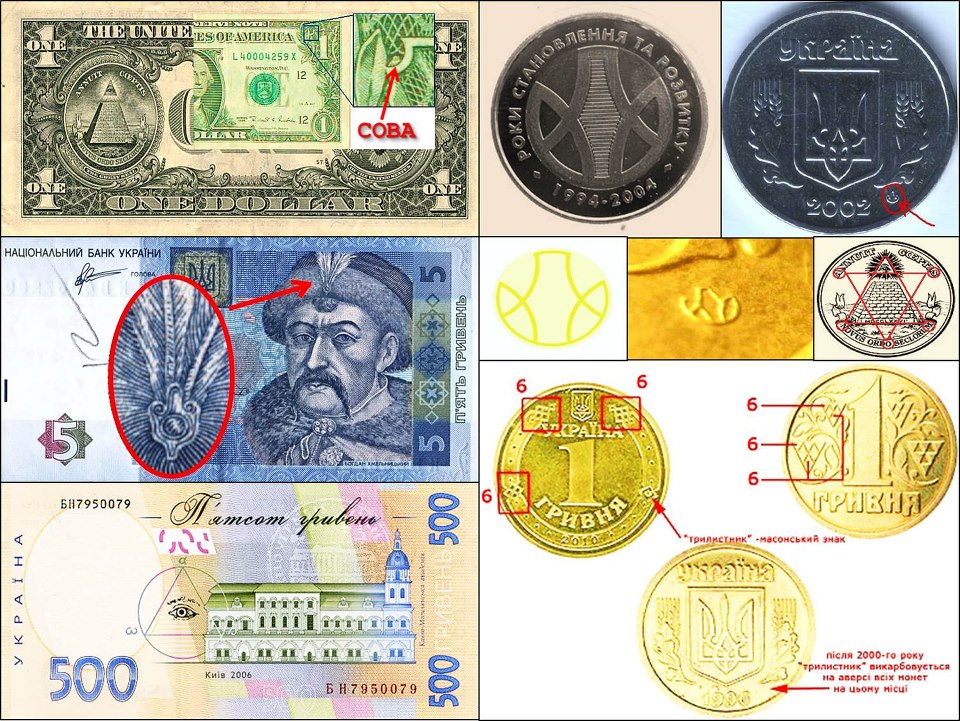 Muita gente sabe sobre a existência do símbolo chamado Olho da Providência nos dólares norte-americanos. Menos conhecida a simbologia maçônica da moeda ucraniana. Na face da nota de 500 UAH aparece o retrato do filósofo ucraniano Hryhorii Skovoroda tido como fundador da maçonaria ucraniana.