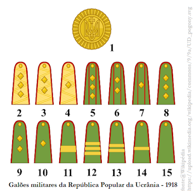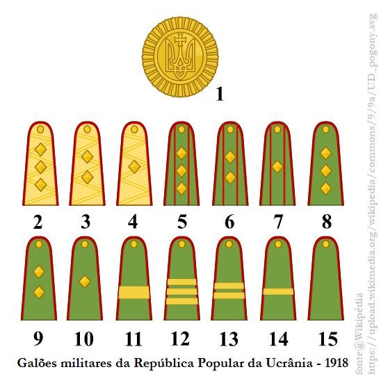 | A 1ª república ucraniana (1918), o galão do khorunzhy é o número 10 |