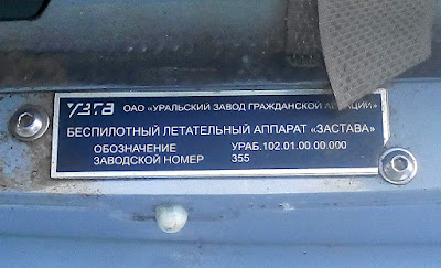 e o nome da empresa russa, assim como o número de série do drone: “355”. A placa