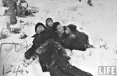 floresta, para escapar dos bombardeamentos da aviação soviética, no decorrer da Guerra de Inverno (Talvisota).