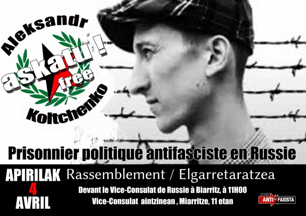| Um cartaz antifascista europeu em apoio ao Oleksandr Kolchenko |