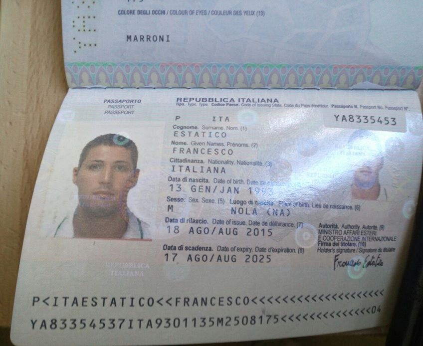 Francesco “Bárbaro” Estatico (13.01.1993, passaporte YA8335453), um napolitano