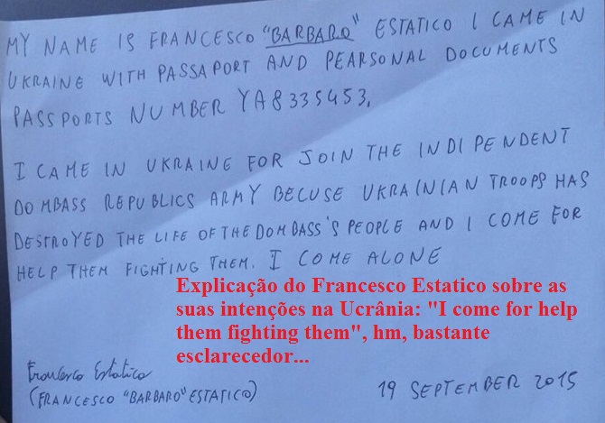 Na conversa com os jornalistas o terrorista afirma que “se envolveu em inúmeros combates na Ucrânia” e diz que