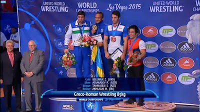 mundo de luta greco-romana na categoria de até 85 kg (fotos do campeão).