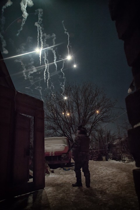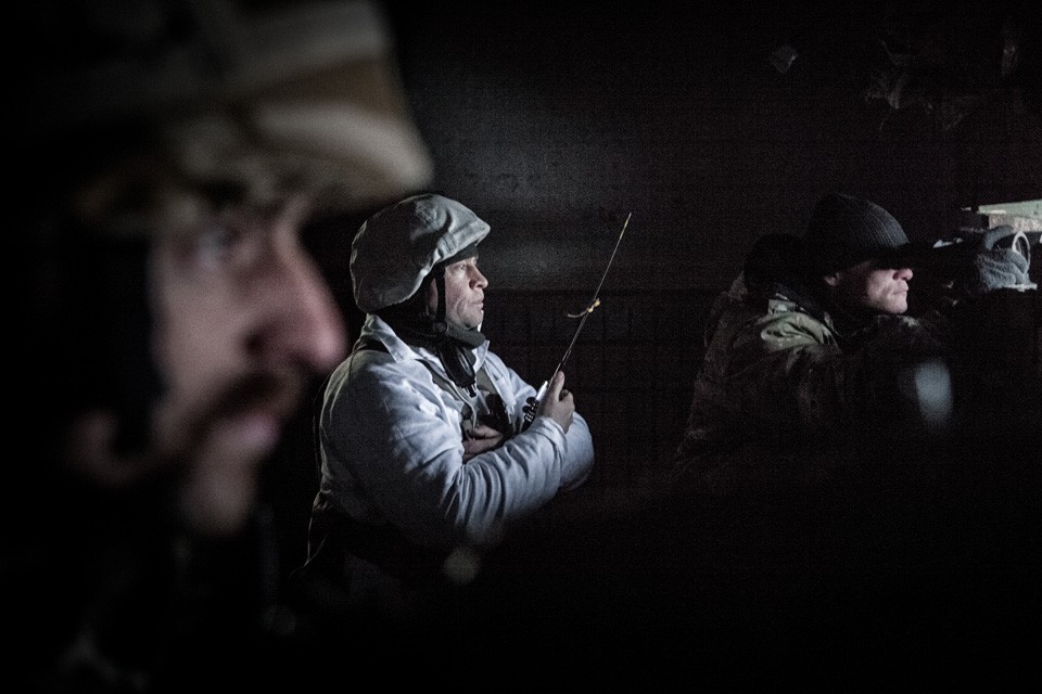 | O comandante do pelotão e os seus homens à espera do ataque aos separatistas, Pisky, 2015 |