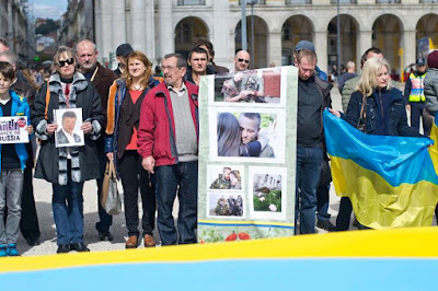 de 200 ucranianos manifestaram-se neste domingo em Lisboa contra a guerra russa na Ucrânia. Na marcha lenta, que partiu do Terreiro do Paço com