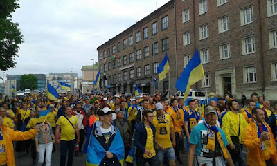 | Uma parte dos cerca de 10.000 fãs ucranianos de futebol nas ruas da cidade de Tampere. Ucrânia ganhou 1:2 a Finlândia. Parabéns Ucrânia! |
