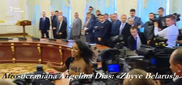 ativista correu topless em frente das câmaras televisivas, gritando «Zhyve