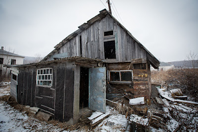em colapso pequenas casinhas de madeira nos talhões abandonados. No interior