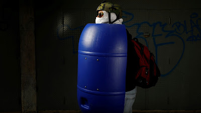 protegendo outros manifestantes com seu escudo de plástico azul, até que um dia