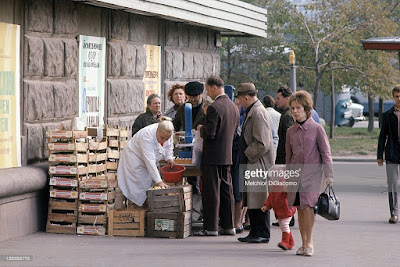 URSS, as pessoas vestiam-se muito mal, o típico guarda-roupa de um homem
