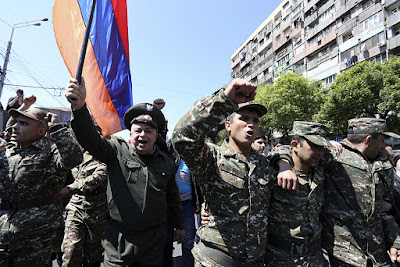 #Armenia 🇦🇲: Armenian soldiers storm out of their barricades in #Yerevan to join the anti-government strikes pic.twitter.com/z1c1qwjIoj— Thomas van Linge (@ThomasVLinge) April 23, 2018