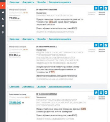 | Os departamentos regionais da Procuradoria, RosGuardiya e MinInterior russos lançam os concursos públicos de aquisição dos serviços de servidores independentes proxy/VPN |