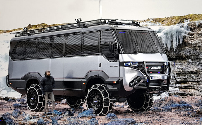 empresa ucraniana Pulsar Expo apresenta o seu mini-autocarro/ônibus 4x4 chamado Torsus