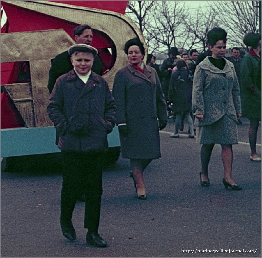 Manif do dia 1 de maio, Yaroslavl, 1970. O jovem, possivelmente é filho/neto de