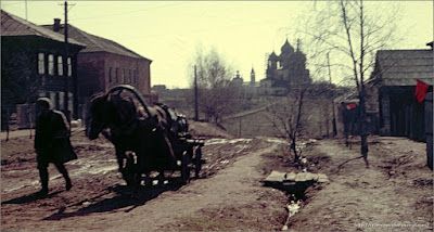 | Suzdal, rua Lenine. Manif com o fundo do Mosteiro da Deposição, 1964. |