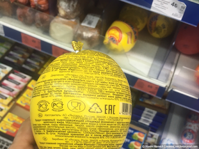 Tipo queijos. “Produto derretido que contém queijo”. Fabricado na Rússia e óleo