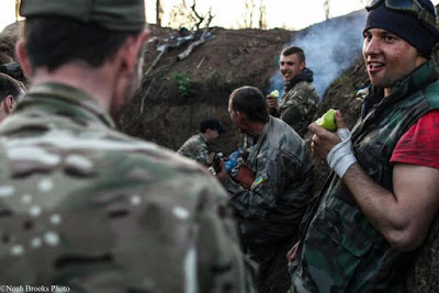apoiados pela Rússia continuam em Shyrokyne, uma pequena aldeiaresortda região deDonetsk, durante os meses. O fotógrafo NoahBrookspassou alguns diasna linha de frente, emtrincheiras